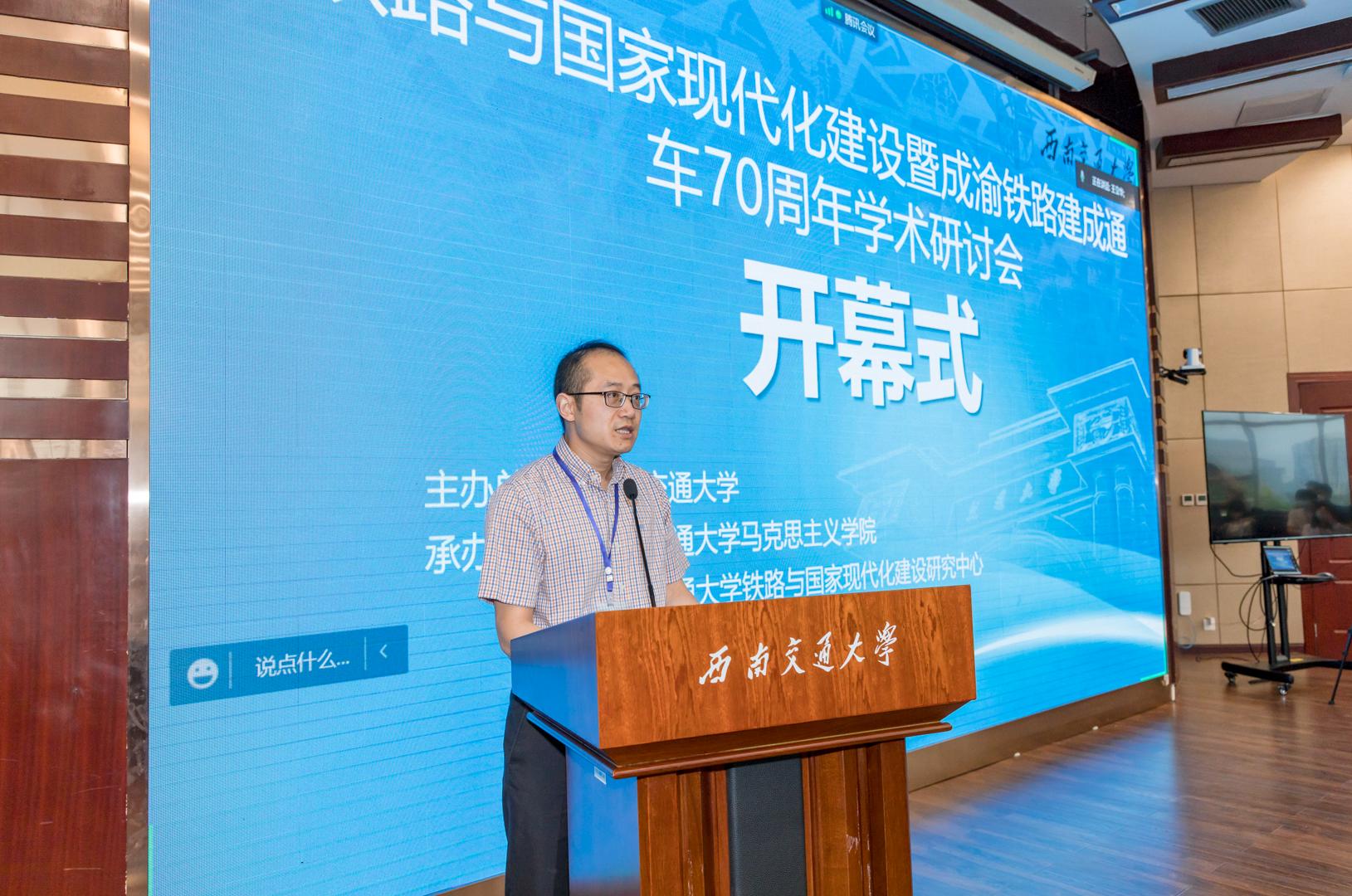 为贯彻落实《中共中央关于党的百年奋斗重大成就和历史经验的决议》精神,全面认识当代中国铁路建设事业取得的伟大成就,深入总结中国共产党领导中国铁路建设的历史经验, 2022年5月29日,“铁路与国家现代化建设暨纪念成渝铁路建成通车70周年”学术研讨会在西南交通大学九里校区召开。会议由西南交通大学主办,西南交通大学马克思主义学院、铁路与国家现代化建设研究中心、《西南交通大学学报》(社科版)编辑部承办。会议采取“线上+线下”相结合的方式召开。来自四川省委党史研究室、中国铁路成都局集团有限公司、中铁二院、中铁二局,以及清华大学、复旦大学、四川大学、南京大学、中国社会科学院大学等30余所高校的40余名专家学者参加会议。