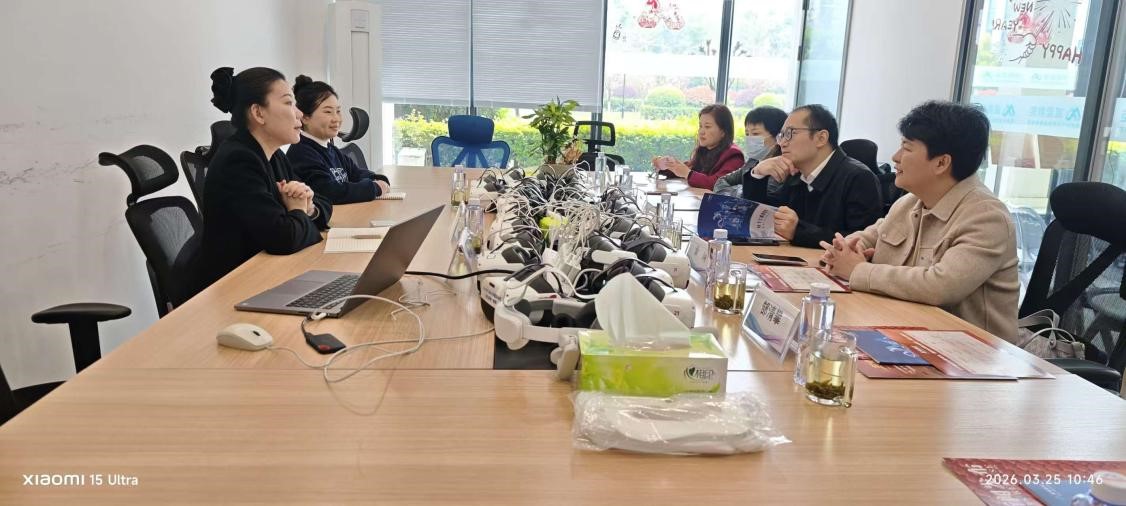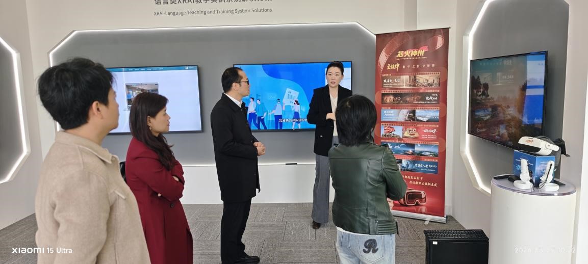 体验活动结束后,威爱科技负责人向我院团队展示了公司在AI-XR教育产品研发、红色文化数字化呈现、教学数据分析等方面的技术成果与案例。