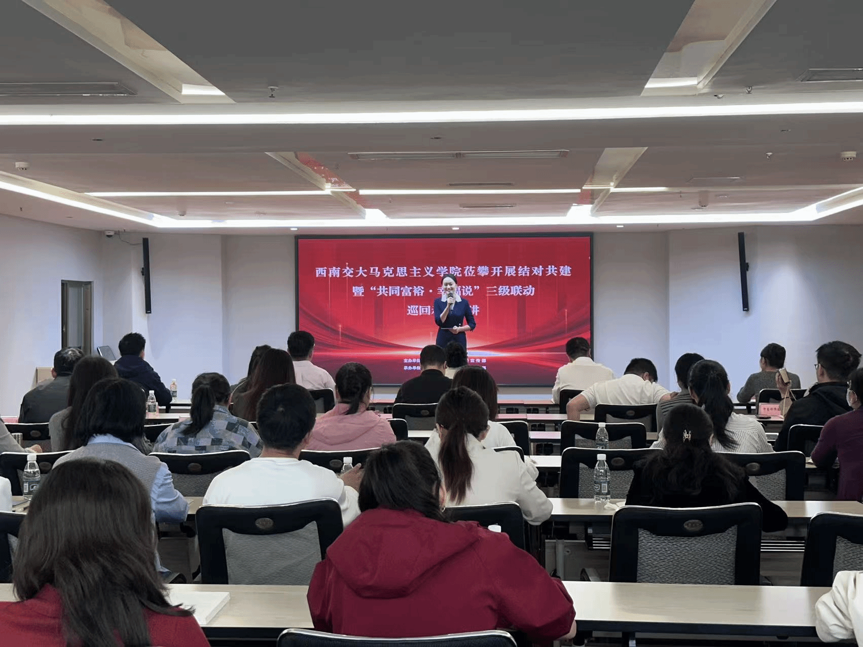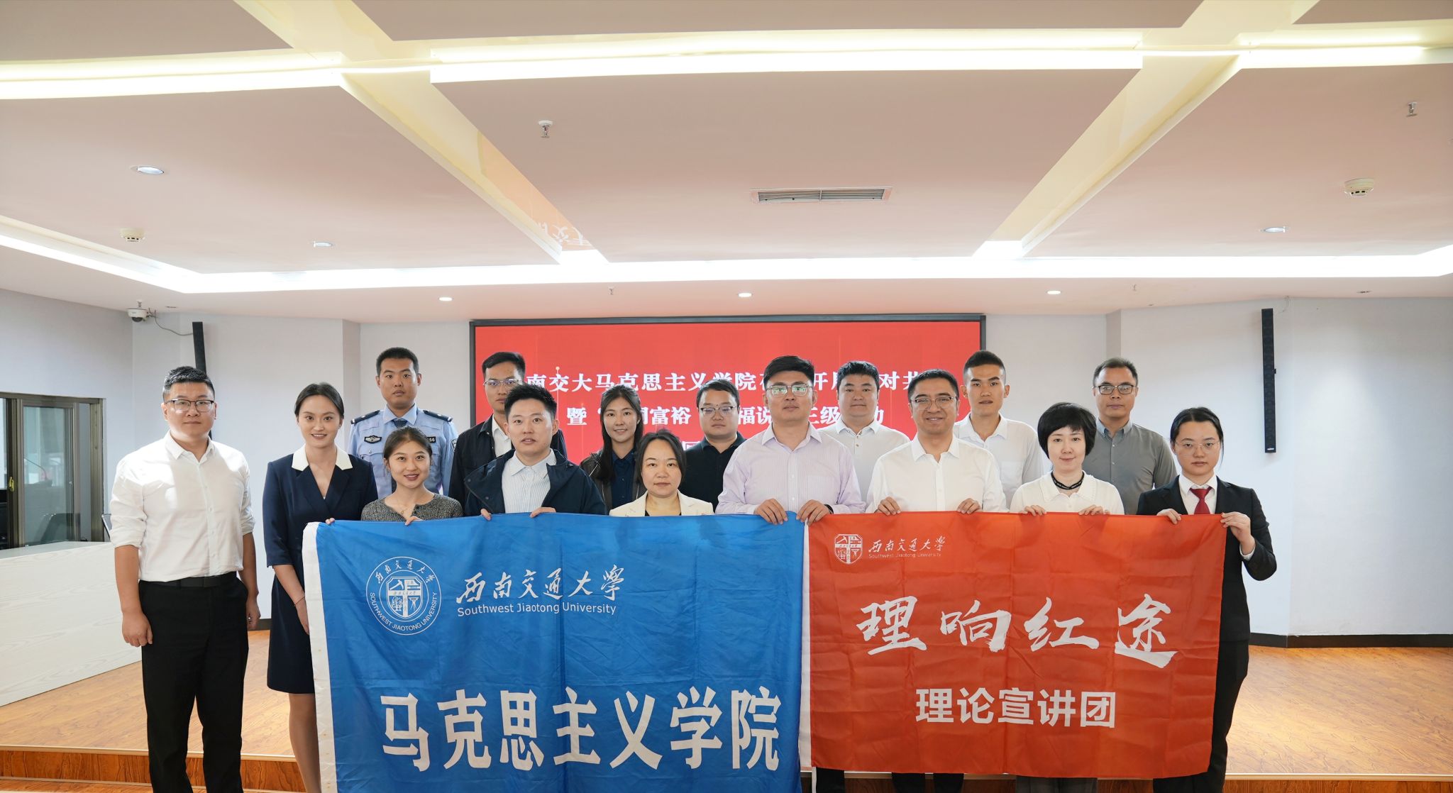 为推动高校优质理论资源下沉基层,促进党的创新理论在攀枝花落地生根、开花结果,10月31日下午,学院一行走进攀枝花市仁和区新时代文明实践中心,开展结对共建暨“共同富裕·幸福说”三级联动巡回宣讲活动。活动涵盖理论宣讲、座谈交流和基地共建等内容。学院副院长王菁、形势与政策教研部主任马先睿,以及西南交通大学“理响红途”理论宣讲团、仁和区“仁人论理”基层宣讲团、“攀谈说理”宣讲团等代表共同参与。
